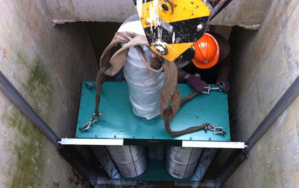 格柵應符合下列規定:1、格柵應耦合在進水管法蘭面上,并配套導桿和提升鏈。2、格柵和擋水板等消能裝置應